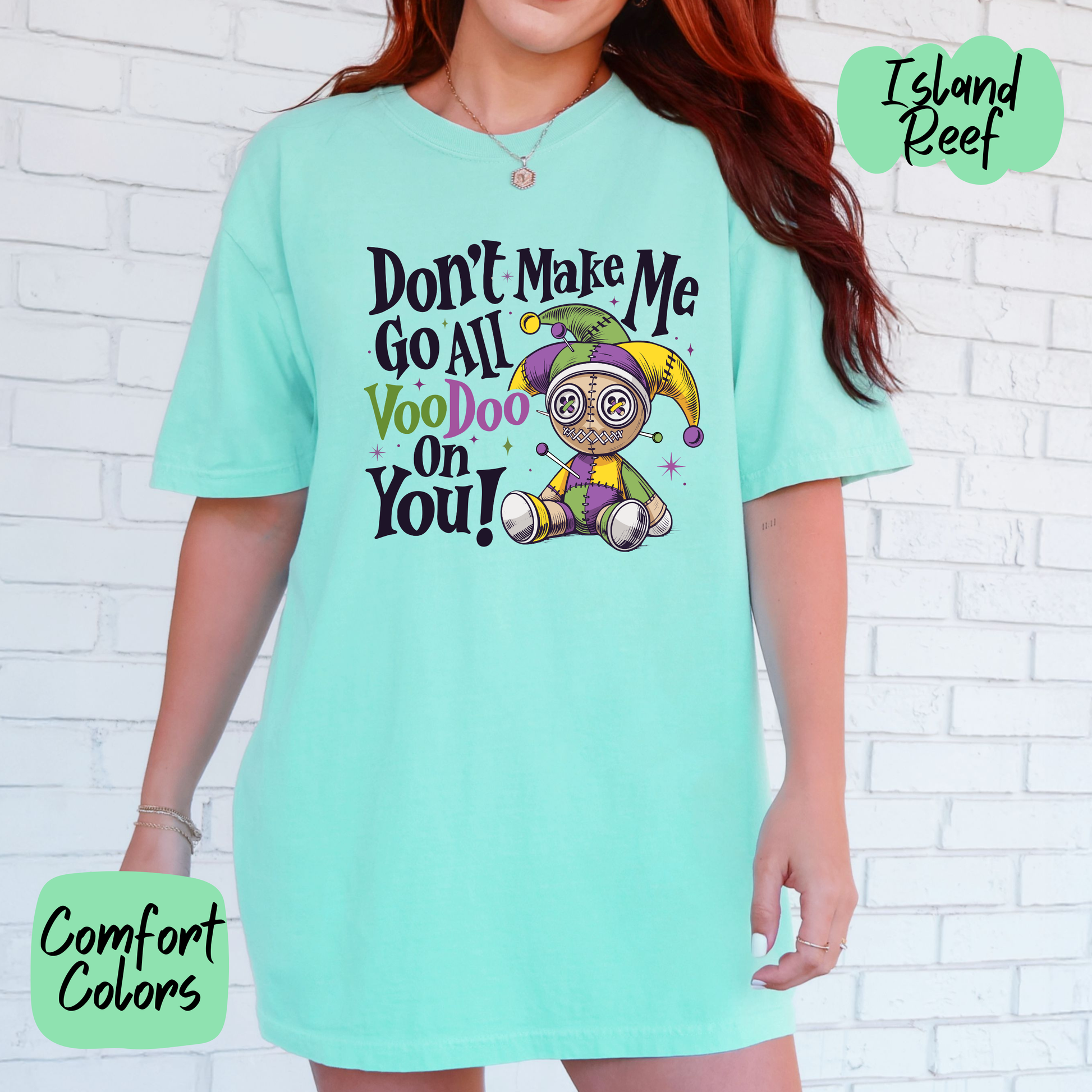 Don't say we didn't warn you! This Don't Make Me Go Voodoo Shirt/Crewneck features a sassy voodoo doll sporting a vibrant Mardi Gras jester hat, ready to cast a spell of fun and mischief. It's the perfect blend of mystical New Orleans charm and playful attitude—ideal for anyone who loves a little magic mixed with their humor. Whether you're joking around with friends or making a bold fashion statement, this crewneck delivers laughs, personality, and just the right amount of voodoo sass. Wear it and let everyone know you're not to be messed with—in the most entertaining way possible!