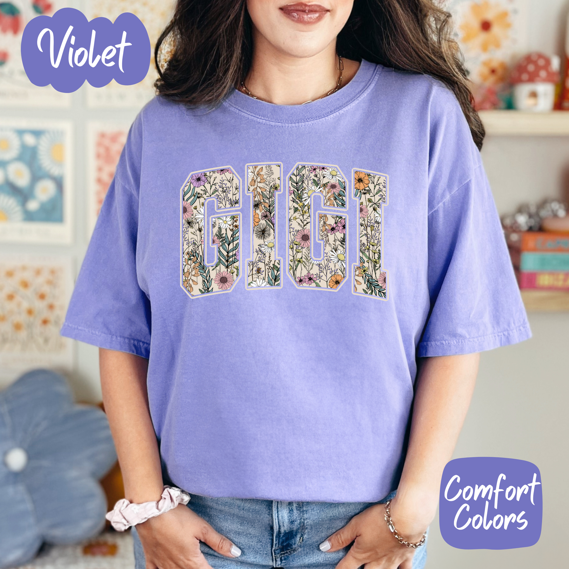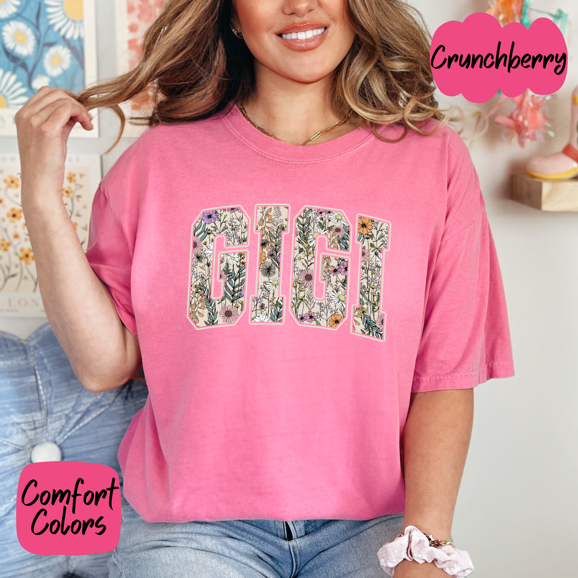 Meet your new favorite way to celebrate Gigi! This playful tee features "Gigi" nestled among pretty florals on a soft ivory canvas. Stitched from Comfort Colors fabric, it's got that perfectly worn-in feel that makes you want to wear it everywhere—whether you're lounging at home, spending time with the grandkids, or just spreading Gigi pride. A joyful tribute that's as comfortable as a warm hug.